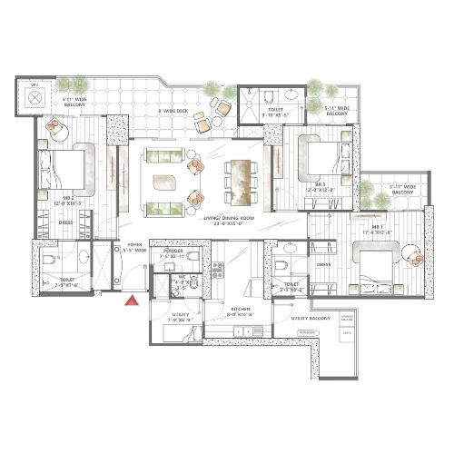 Spanning approximately 14 acres of land in the fast-growing Sector 69 corridor, the project comprises 6 towers rising up to 41-45 floors. The unit mix includes spacious formats such as 3.5 BHK (2,200-2,400 sq ft) and 4.5 BHK (3,000-3,200 sq ft) apartments. Strategically located in Sector 69, Gurugram, the site captures excellent connectivity while delivering a high-end residential lifestyle.
